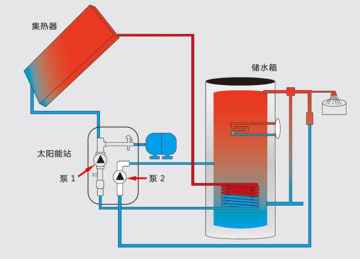 太陽集熱器與儲熱水箱循環(huán)系統(tǒng)采用防凍介質(zhì),能耐-40°C低溫,適用性強(qiáng);