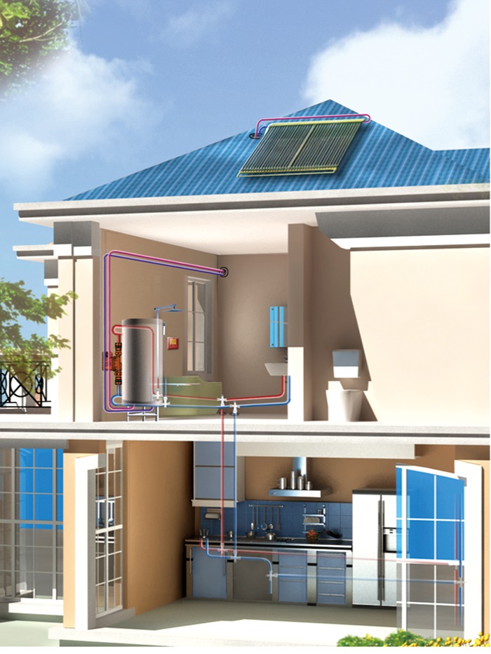 太陽集熱器與水箱分離,根據(jù)需要靈活安裝,可與建筑完美融合;
